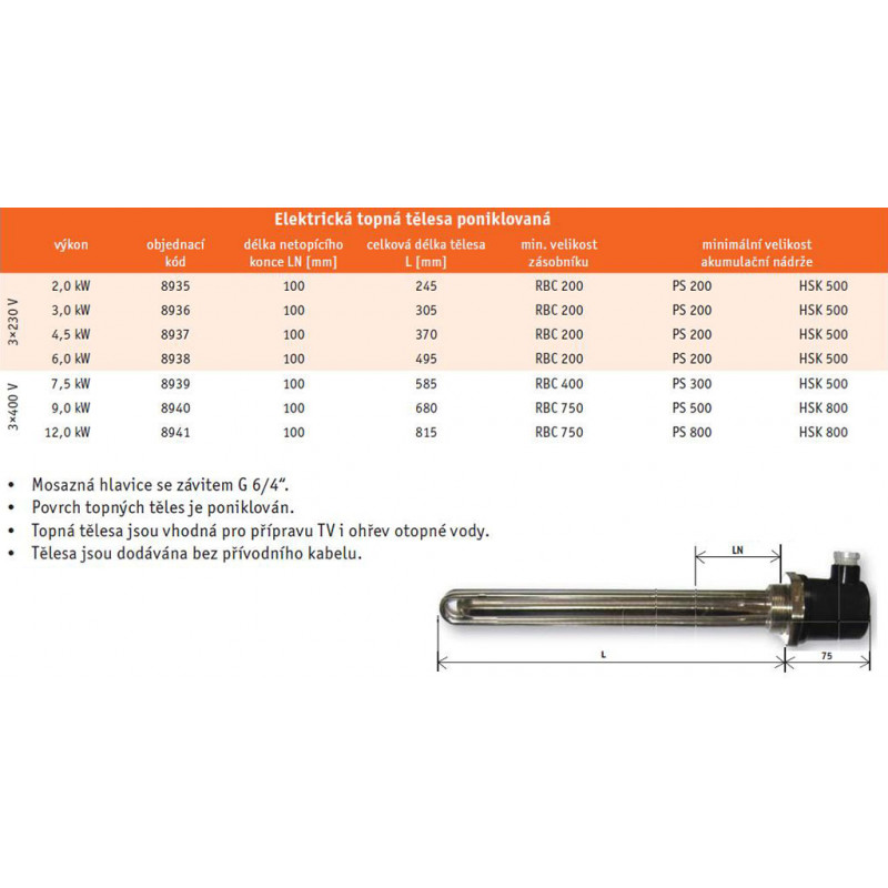 - Pro odeslání do Česka navštivte REGULUS topné těleso 7,5kW bez termostatu, G 6/4“, ponikl i pro TV, IP54 8939