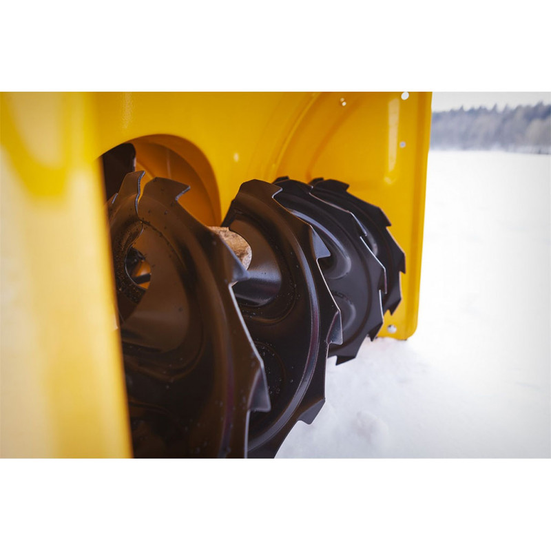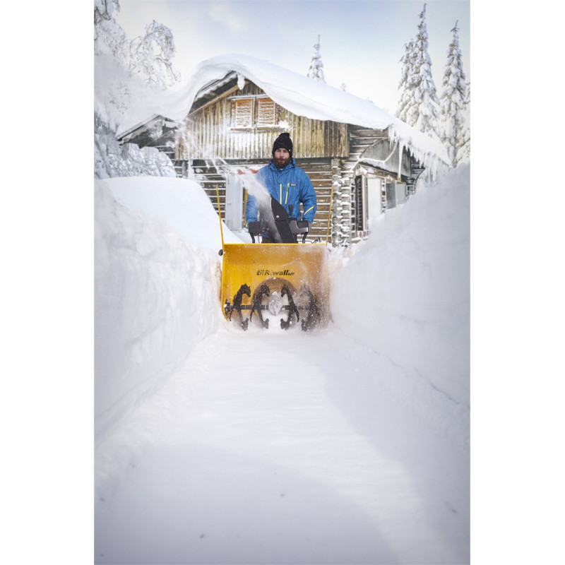 • erős motor, nagy munkamagasság, fogazott marócsiga, nagy teljesítményű kidobó ventilátor és széles kidobó kürt a fagyott vagy nedves hóhoz is