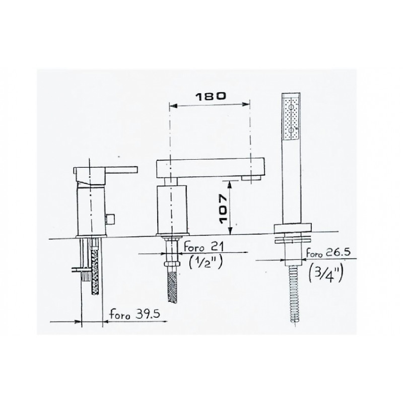 SAPHO REITANO TRIUMPH 3 részes kádperemre szerelhető kádtöltő csaptelep, króm 8730Műszaki adatok: