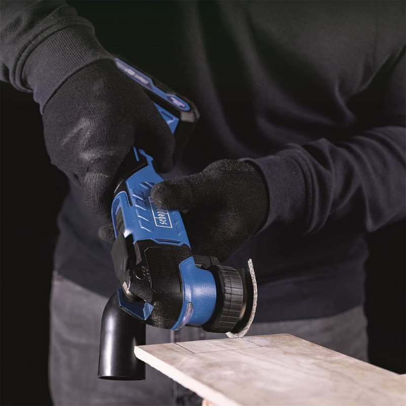 A Scheppach C-MT40-X egy jól felszerelt, többfunkciós akkus szerszám, amely ideális festék vagy ragasztó eltávolítására, sarkok és szűk helyeken való csiszolásra és vágásra, csövek vágására, szilikon tömítőanyagok eltávolítására, ablakkeretek felújítására, csempe, járólap, kerámiaburkolat, gipszkarton, műanyagok és puha fémek vágására, vagy kisebb felületek csiszolása és reszelése. Az eszköz kompatibilis a Scheppach IXES 20V gépcsalád akkujaival és töltőivel. A hat fokozatban (10.000-40.000 ford./perc) állítható oszcillációs sebességgel minden feladathoz tud alkalmazkodni. A tartozékok állítható rögzítési iránya biztosítja a könnyű hozzáférést még a nehezen elérhető helyeken is. A tartozékok állítható csatlakoztatási iránya biztosítja a könnyű hozzáférést még a nehezen elérhető helyeken is. A robusztus fém áttételi fogaskerekek hosszú élettartamot és tartósságot garantálnak még igényes feladatok végzése esetén is. A 3,2°-os oszcillációs szög precíz munkát tesz lehetővé sokféle alkalmazás esetén. A gyors, szerszám nélküli tartozékcsere időt takarít meg és növeli a munka hatékonyságát. Az ergonomikus kialakítás és a puha tapintású markolat kényelmes fogást biztosít még hosszabb használat során is. A gép csatlakoztatható külső elszívó berendezéshez a beépített elszívó-csatlakoztató csonkkal. A LED világítás a kikapcsolás után még 10 másodperces késleltetéssel tökéletes láthatóságot biztosít rossz fényviszonyok mellett is. A készlet számos tartozékot tartalmaz: süllyesztett fűrészlap, gyémánt fűrészlap, kaparó, delta csiszolólap, 9 fa csiszolólap, elszívó adapter és szögadapter. A csomagolás nem tartalmazza az akkumulátort és a töltőt.