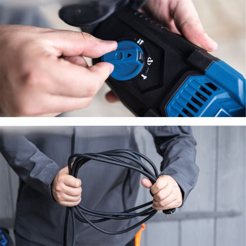 A könnyű és nagy teljesítményű Scheppach DH 2260 elektromos kombikalapács 3 J ütésenergiával sokoldalú segítő otthon, a műhelyben, vagy az építkezésen végzett munkákhoz. Praktikus 4 az 1-ben funkciót kínál, amely lehetővé teszi a klasszikus fúrást, az ütvefúrást, a vésést és a vésőpozíció beállítását, így könnyen igazítható egy adott feladathoz. A percenkénti akár 5500 ütésszámnak köszönhetően kemény anyagokkal, pl. betonnal vagy falazattal is megbirkózik. A gép „lelke” egy nagy teljesítményű, 1050 W-os villanymotor, amely megbízható működést és elegendő teljesítményt biztosít még igényesebb használat esetén is. A sebesség 0–1230 ford./perc tartományban folyamatosan szabályozható, ami precíz vezérlést tesz lehetővé munka közben. Az egyes funkciók közötti váltás gyors és kényelmes a praktikus választókapcsolónak köszönhetően, szerszámok nélkül. A maximális kényelem és biztonság érdekében a kalapács egy 360°-ban elforgatható kiegészítő fogantyúval van felszerelve, amely minden munkapozícióban biztos fogást biztosít. Az ergonomikus és kompakt kialakítás puhított markolattal kényelmes fogást biztosít még hosszabb munka során is. Az SDS-Plus befogórendszer lehetővé teszi a fúró- és vésőszárak gyors cseréjét felesleges állásidő nélkül. A csomag számos tartozékot tartalmaz, beleértve a hegyes és lapos vésőt (14 × 250 mm), 6, 8 és 10 mm átmérőjű kőzetfúrókat, mélységütközőt és egy praktikus szállítókoffert, amely megkönnyíti a tárolást és a hordozást. Ez a modell ideális választás barkácsolók számára és igényesebb otthoni projektek, ahol a hangsúly a teljesítményen, a sokoldalúságon és a tartósságon van.