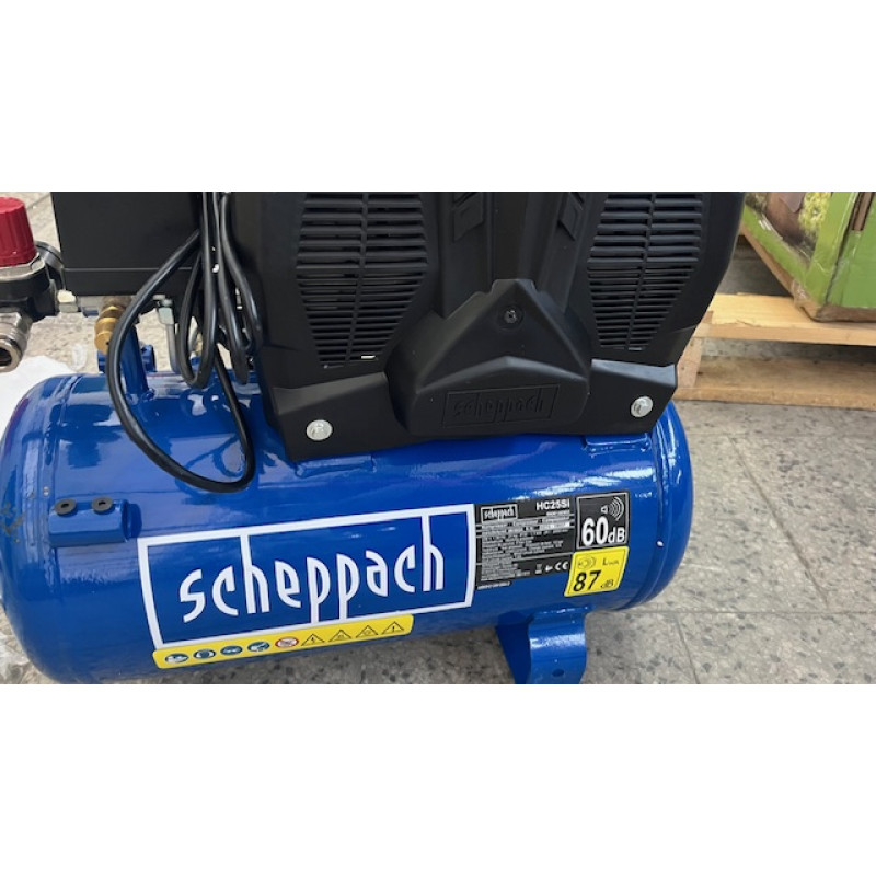 A Scheppach HC 25 Si egy csendes olajmentes kompresszor, amely alkalmas olyan helyekre is, ahol kritérium az alacsony zajterhelés. A 60 dB-es zajszintje nagyjából megfelel egy gyorsforraló forrási zajszintjének, azaz használat közben szinte fel sem tűnik, hogy a kompresszor működik. További előnye az olajmentes technológia, amely következtében nem kerül sor olaj párolgásra sem a tartályba sem a további levegőáramba Ez lehetővé teszi a használatát akár élelmiszerek közelében, vendéglátásban vagy lakkozó műhelyekben. Az olajmentes technológia továbbá minimális karbantartást igényel. A Scheppach ugyancsak megoldotta a csendes kompresszorok általános hátrányát, az alacsony szívóteljesítményt. Az új technológiának köszönhetően 230 l/perc teljesítményre képes, ami szinte duplája a hasónló készülékeknek és akár vetekszik a hagyományos (nem halk) kompresszorok teljesítményével. A 24 literes tartály a sűrített levegő tárolására szolgál és a motor csak akkor kapcsol be automatikusan, ha a nyomás kívánt szint alá csökken. A tartály továbbá lehetővé teszi, hogy egy multifunkciós segítőre találjunk ebben a kompresszorban. Ennek köszönhetően, az általános fújáson kívül, pneumatikus szerszámok üzemeltetésére is alkalmas. A kompresszor természetesen nyomásmérővel is el van látva, amellyel a munkanyomás ellenőrizhető. A fogantyú és a kerekek nagyban megkönnyítik a szállítást és mozgatást. A rezgéscsillapító talp pedig nyugodt üzemelést biztosít. A tartály továbbá lehetővé teszi, hogy egy multifunkciós segítőre találjunk ebben a kompresszorban. Ennek köszönhetően, az általános fújáson kívül, pneumatikus szerszámok üzemeltetésére is alkalmas. A kompresszor természetesen nyomásmérővel is el van látva, amellyel a munkanyomás ellenőrizhető. A fogantyú és a kerekek nagyban megkönnyítik a szállítást és mozgatást. A rezgéscsillapító talp pedig nyugodt üzemelést biztosít. A tartály továbbá lehetővé teszi, hogy egy multifunkciós segítőre találjunk ebben a kompresszorban. Ennek köszönhetően, az általános fújáson kívül, pneumatikus szerszámok üzemeltetésére is alkalmas. A kompresszor természetesen nyomásmérővel is el van látva, amellyel a munkanyomás ellenőrizhető. A fogantyú és a kerekek nagyban megkönnyítik a szállítást és mozgatást. A rezgéscsillapító talp pedig nyugodt üzemelést biztosít.