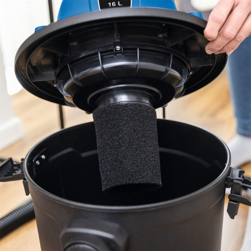 A Scheppach VC 16 egy kompakt és nagy teljesítményű segítő, amely képes kezelni mind a száraz szennyeződéseket, mind a kiömlött vizet. Ez az univerzális porszívó 1200 W teljesítményével és 20 kPa szívónyomásával könnyedén megbirkózik a műhely, a garázs és az otthon takarításával. A fúvófunkciónak köszönhetően a munkapadról is eltávolíthatja a szennyeződéseket, a nehezen elérhető helyekről fújhatja ki a port, vagy gyorsabban száríthatja a kisebb területeket. A tartós, törhetetlen, 16 literes műanyag tartály praktikus gyorszárral van felszerelve, amely lehetővé teszi a porzsák egyszerű cseréjét. A három méteres tápkábel és az 1,8 méter hosszú tömlő nagy munkatartományt biztosít, így kényelmesen elérheti még a legeldugottabb zugokat is. A porszívó könnyen szállítható az ergonomikus fogantyúnak és a négy 360°-ban forgó keréknek köszönhetően, amelyek sima mozgást tesznek lehetővé bármilyen felületen. A praktikus tartozéktartó mindent a helyén tart, így munka közben mindig rendben és áttekinthetően tarthatja a dolgokat. A csomag tartalmaz egy 1,8 m-es szívótömlőt, három darab 33 cm-es műanyag csövet, egy FSC-tanúsítvánnyal rendelkező papírporzsákot, egy habszűrőt, egy réstisztító fejet és egy padlótisztító fejet - mindent, amire szüksége van a kompromisszumok nélküli tökéletes tisztításhoz.