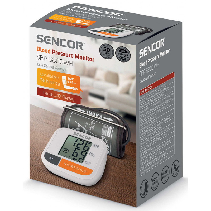 A Sencor SBP 6800WH felkaros vérnyomásmérő segítségével folyamatosan akár otthonában is ellenőrizheti vérnyomását. Az eszköz jól olvasható kijelzővel és nagy pontossággal méri a vérnyomást és a pulzusszámot. Méri a szisztolés és diasztolés vérnyomást és szívverést, illetve lehetőség van a magas vérnyomás grafikus megkülönböztetése (mérsékelt / közepes / erős hipertónia). A beépített memória az utolsó 60 mérést képes tárolni, elemcsere esetén az mentett adatok nem törlődnek.