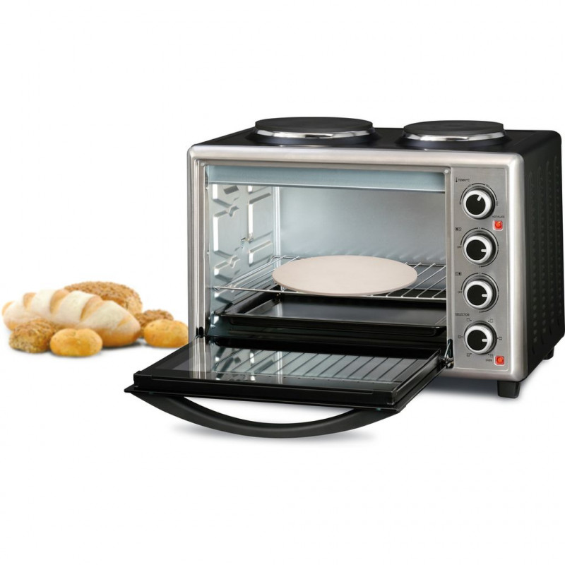 SENCOR SEO 3628SS elektromos sütő 41006576A Sencor SEO 3628SS két rozsdamentes főzőlappal rendelkező többfunkciós elektromos minisütő. A kompakt kialakításnak köszönhetően egy 36 literes, belső világítással rendelkező sütő is áll az Ön rendelkezésére. A mechanikus kezelőpanel rozsdamentes acél felülettel rendelkezik, így könnyen tisztítható és karbantartható. A készülék 90–230°C-ig terjedő teljes hőszabályozással rendelkezik, és mindkét főzőlap külön szabályozható. A forgógomb segítségével kényelmesen választhat az öt különböző program közül. A Sencor minisütő két biztonsági állapotjelzővel rendelkezik. Az egyik a sütő működését vezérli, míg a másik a főzőlapokét.
