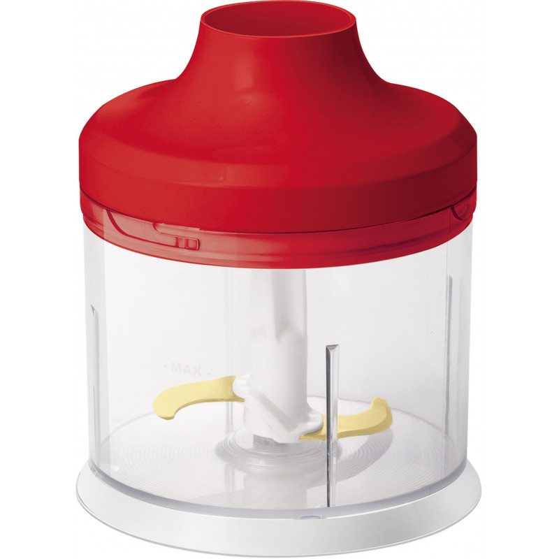 SENCOR SHB 4464RD botmixer 41008773A Sencor SHB 4464RD botmixer krémlevesek, szószok, bébiételek gyors elkészítésében nyújthat Önnek segítséget. Az extra csendes 800 W teljesítményű motor változtatható sebesség funkcióval lett ellátva. A 6 rozsdamentes Titánból készült aprító pengék pedig forró ételek készítése mellett jégzúzáshoz is alkalmasak. Az ergonomikusan kialakított markolat biztos és kényelmes fogást biztosít. Az 700 ml-es keverőpohár segítségével nagy mennyiségű alapanyag is feldolgozható vagy akár mérőedényként is használható, továbbá megtalálható egy 500 ml kapacitású edény is, mely aprításra kiválóan alkalmazható.
