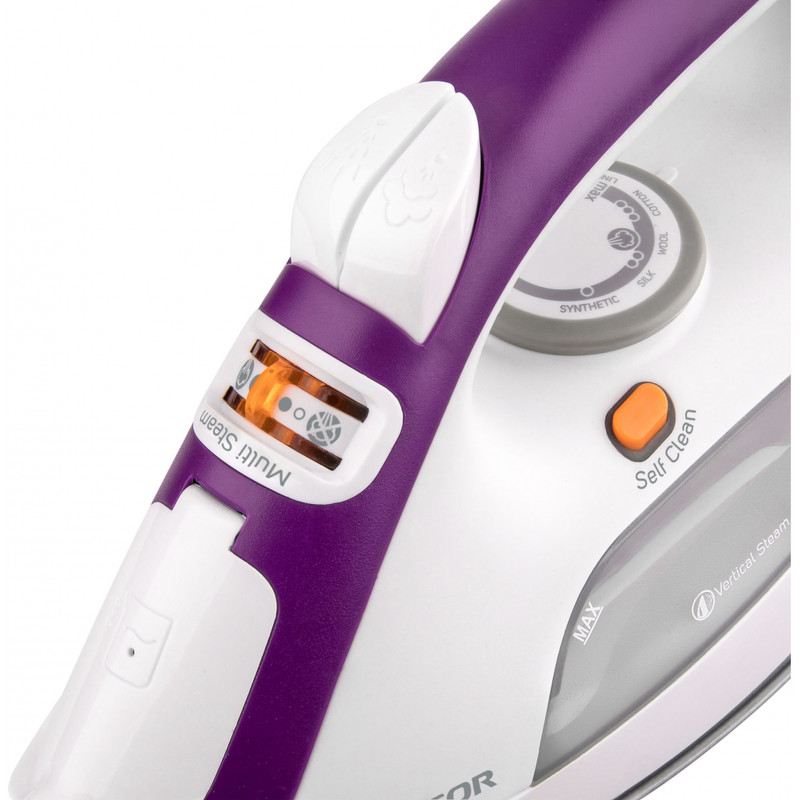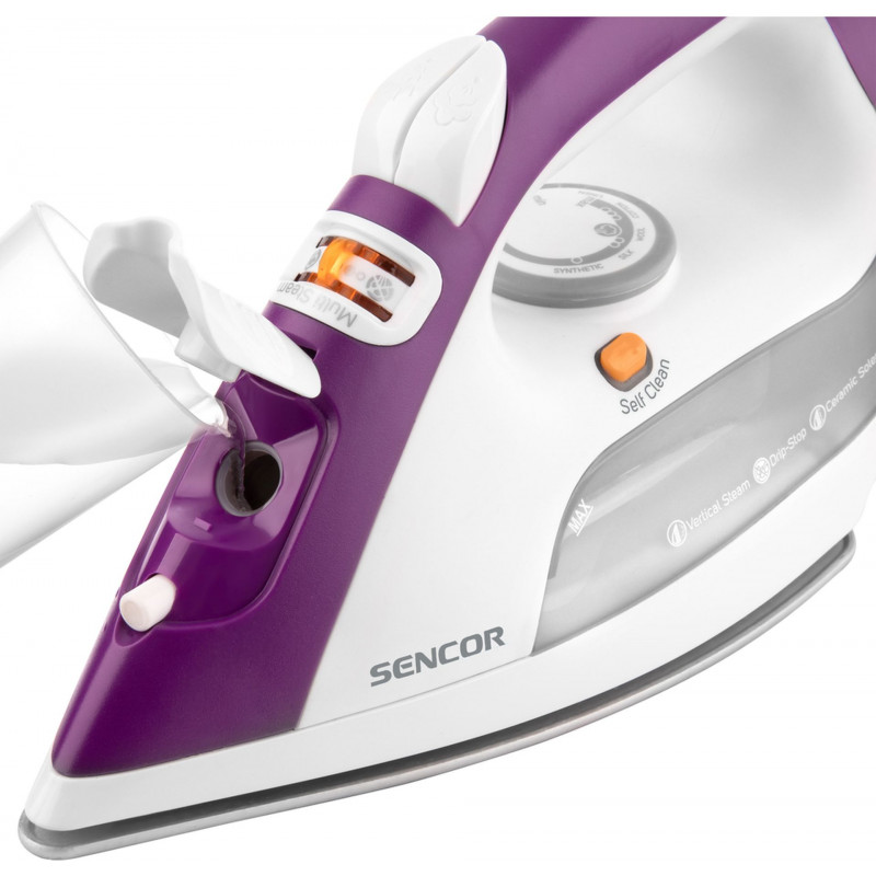 SENCOR SSI 5700VT gőzölős vasaló 41006688A Sencor SSI 5700VT vasaló kerámia gőzölő vasalófelülettel rendelkezik, mely könnyedén használható bármilyen textílián. Az átlátszó víztartálynak köszönhetően bármikor nyomonkövethető, mikor kell a gőzöléshez a vizet újratölteni. A tartály könnyen, egyszerűen feltölthető. A fokozatmentes hőmérséklet és a gőzkiáramlás szabályzási lehetősége szintén megkönnyíti a vasalást, mint a beépített gomb által választható extra funkciók vízpermetezés, gőzlövet és a függőleges gőzölés vagy a locsoló. A megfelelő hőmérséklet beállítás mechanikusan történik és jelzőfény mutatja a hőmérséklet elérését. A hálózati kábel 360 °-ban elforgatható a vasalás közbeni elcsavarodás és az összegubancolódott vezeték elkerülése érdekében. Az öntisztító Self-cleaning rendszer megbízhatóan távolítja el az ásványi lerakódásokat, a cseppenés gátló Drip-Stop funkció megakadályozza a foltosodást a textilián.