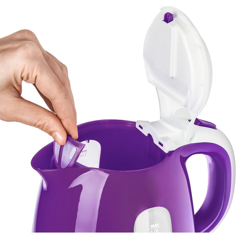 SENCOR SWK 1015VT vízforraló 41005059A klasszikus Sencor SWK 1015VT elektromos vízforralóval időt és energiát takaríthat meg. A vízforraló 1100 W teljesítményének köszönhetően gyorsan forralja fel a vizet. Az 1 literes kapacitása révén ideális választás 1-2 személyes háztartásokba, valamint a beépített szűrő könnyen és egyszerűen eltávolítható, tisztítható. A vízforraló két oldalán vízjeles mérték segíti a felhasználót. A beépített kiváló minőségű rozsdamentes acélból készült rejtett fűtőszál nem melegíti fel a körülötte lévő levegőt, mint a különböző főzőlapok esetén, csak a vízforraló tartalmát. Számos biztonsági funkció érhető el, mint a túlmelegedés elleni védelem vagy víz nélküli bekapcsolás lehetősége.