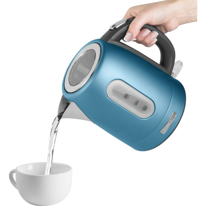 SENCOR SWK 1222BL vízforraló 41006326A Sencor SWK 1222BL egy nagy teljesítményű nemesacélból készült elektromos vízforraló 2150 watt maximális teljesítménnyel. Akár 1,2 liter vizet is képes egyszerre felforralni, így 1-2 fős háztartásokba megfelelő választás. A készülék használatát ergonomikusan kialakított fogantyú teszi kényelmesebbé, valamint a markolatba épített fedélnyitó gomb. A beépített szűrő könnyen és egyszerűen eltávolítható, tisztítható. A vízforraló kettős biztonsági rendszerrel lett felszerelve. A 360°-ban elforduló talpnak köszönhetően a tápkábel sem zavarja a munkában.