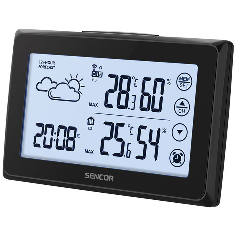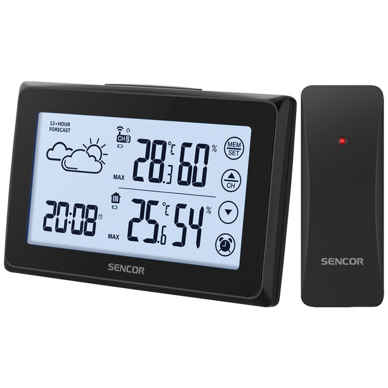 A Sencor SWS 2850 időjárás állomás alkalmas a páratartalom és hőmérséklet beltéri és kültéri mérésére. Az LCD-kijelzőn látható a pontos idő és dátum, valamint a hét aktuális napja is. Lehetőség van ismétlődő ébresztés beállítására. Akár 50 méteres távolságig is képes az adatátvitelre. 12 és 24 órás időformátum megadásának lehetősége, valamint a hőmérséklet °C és °F fokban is megjeleníthető