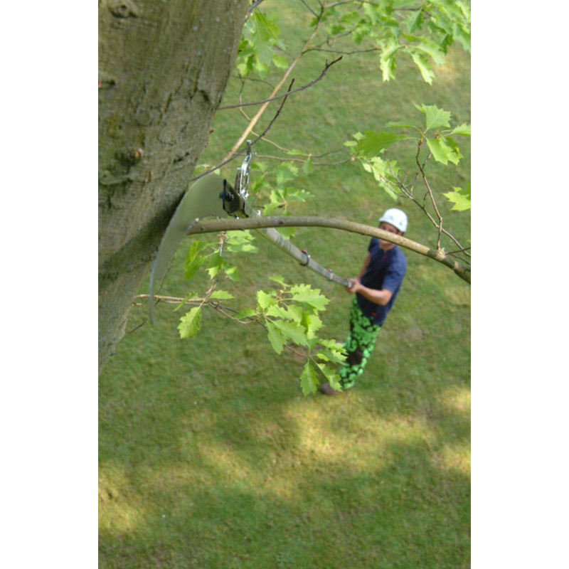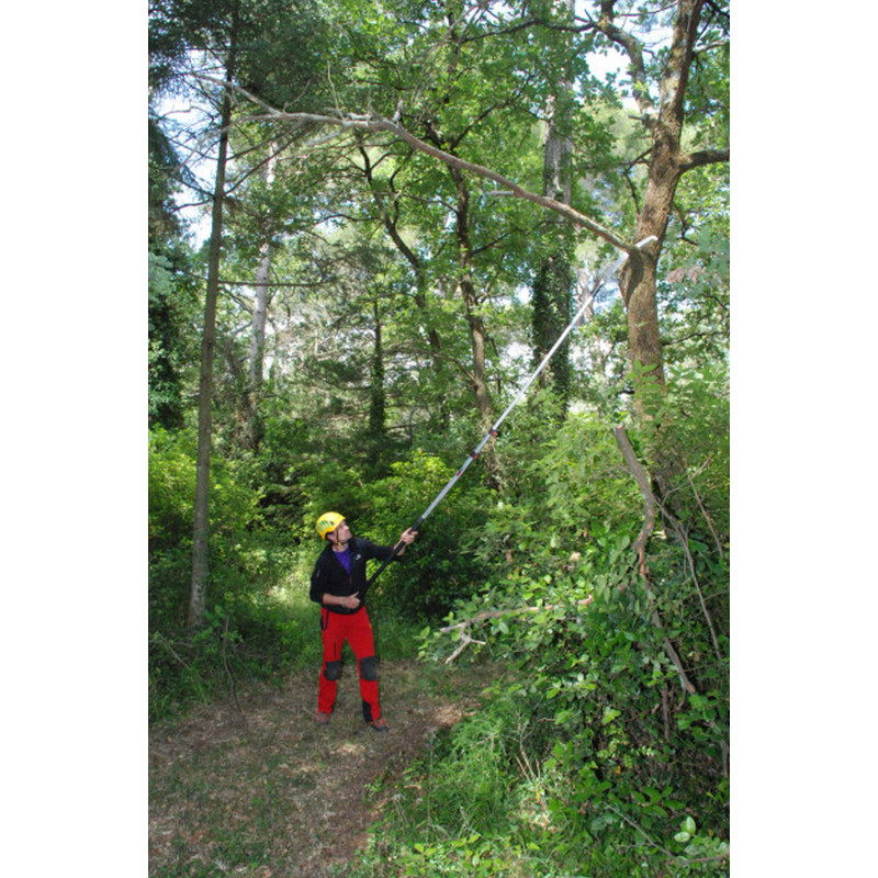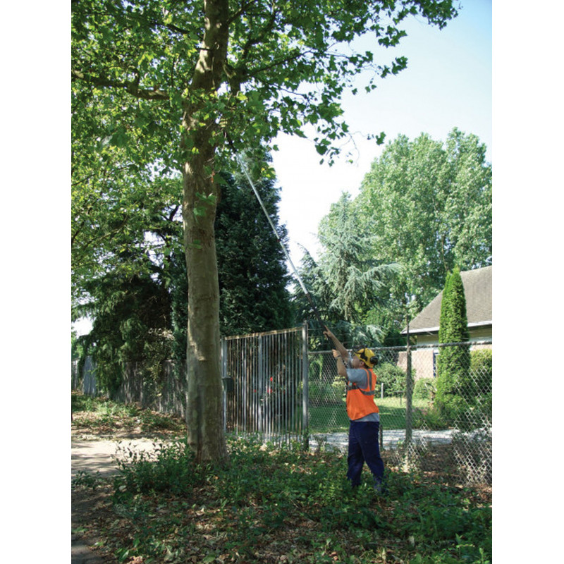 Az ovális formájú alumínium nyél precíz irányítást biztosít a vágás során, miközben növeli a teljes fűrész merevségét és szilárdságát, ezáltal minimalizálja a hajlást. Teljesen kihúzva maximális hossza 6,3 méter. Két rögzítő mechanizmus (gombok és karok) biztosítja a biztonságos és stabil hosszbeállítást. A nyél alsó része gumírozott markolattal van ellátva a kényelmes és biztonságos fogás érdekében még nedves környezetben is.