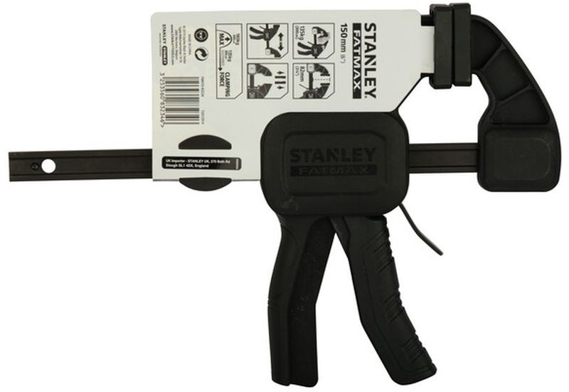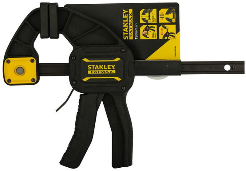 A Stanley FatMax L egykezes szorító praktikus és erős rögzítőeszköz közepes méretű munkadarabok ideiglenes befogásához. Egykezes működése lehetővé teszi a gyors, egyszerű használatot még akkor is, ha a másik kezedre szükséged van a munkadarab pozícionálásához. 150 mm-es befogási szélessége és akár 135 kg-os tartóereje stabil és megbízható fogást biztosít fából, fémből vagy más anyagokból készült elemeknél.