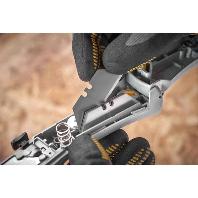 Stanley FatMax FMHT10504 egy robusztus, professzionális kés kihúzható pengével, amelyet különböző anyagok precíz és igényes vágására terveztek. A tartós alumínium ház és az ergonomikus kialakítás nagy szilárdságot, hosszú élettartamot és kényelmes használatot biztosít. Az integrált pengetároló és a szerszám nélküli pengecsere-rendszer gyors és egyszerű kezelést tesz lehetővé munka közben.