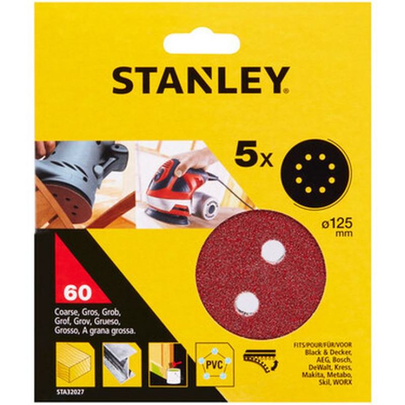 Stanley STA32027-XJ Csiszolópapír készlet, 125 mm, P60, 5 db