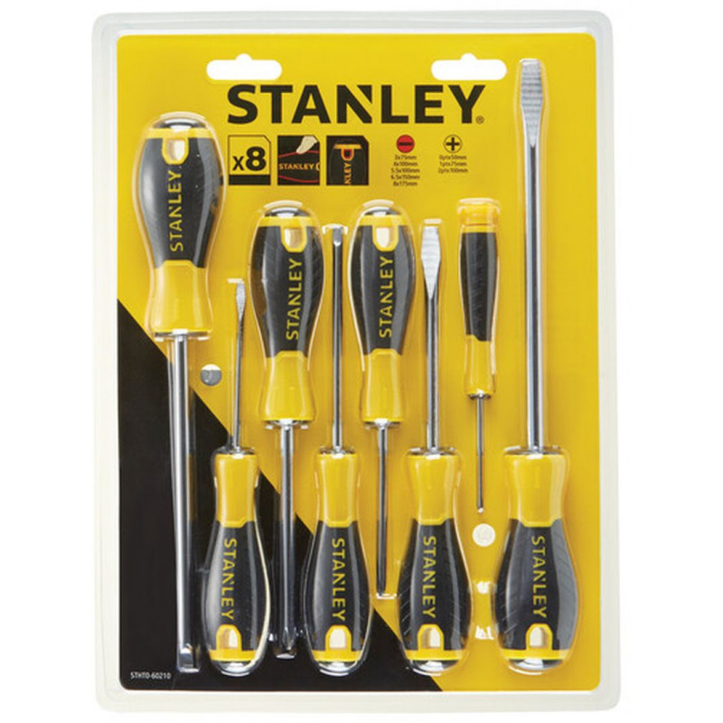 A STHT0-60210 egy 8 darabos Essential sorozatú csavarhúzó-készlet, amelyet mindennapi használatra, otthoni és professzionális feladatokhoz egyaránt terveztek. A készlet minden eszköze króm-vanádium acélból készült, puha fogású (Soft-Grip) markolattal rendelkezik, így kényelmes és biztonságos fogást biztosít még hosszabb használat során is.
