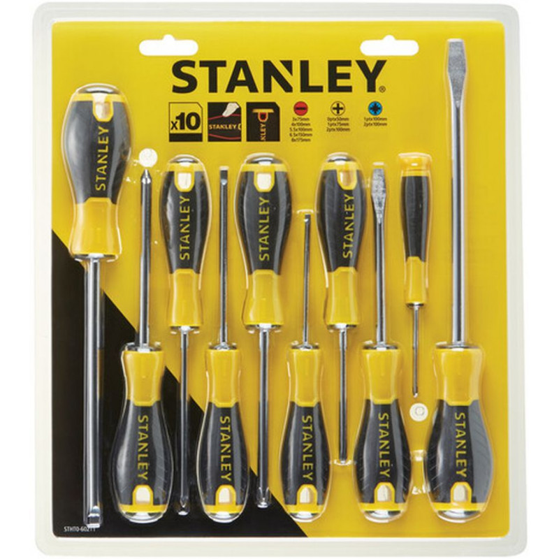 A STHT0-60211 egy 10 részes csavarhúzó-készlet az Essential sorozatból, mely a mindennapi használatra készült. A készlet különféle lapos, Phillips és Pozidriv hegyű csavarhúzókat tartalmaz. A szerszámok króm-vanádium acélból készültek, puha fogású (Soft-Grip) markolattal a kényelmes és biztonságos fogásért. Ideális választás otthoni és műhelyi szerelési feladatokhoz is.