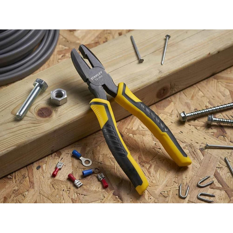 A Stanley STHT0-74456 DynaGrip kombinált fogó kompakt méretű, 150 mm hosszúságú kéziszerszám, amelyet különösen szerelési, karbantartási és általános műhelymunkákhoz ajánlanak. A DynaGrip markolat ergonómikus kialakítása biztos és kényelmes fogást nyújt, a kovácsolt acél szerkezet pedig megbízható erőt biztosít a különféle fogási és vágási feladatokhoz.