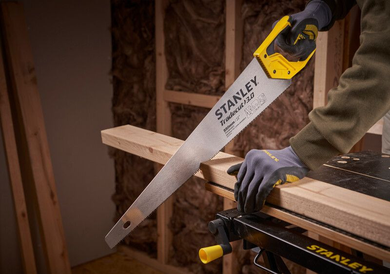 A Stanley STHT1-20352 TradeCut 3.0 kézi fűrész 550 mm-es pengehosszal és 8 fog/” („TPI”) finomsággal rendelkezik, univerzálisan használható kemény- és puhafák, OSB lemezek, habosított és méhsejtes panelek vágására. A 0,85 mm vastag penge csökkenti a hajlást, így javítja a vágás pontosságát és hatékonyságát. Az indukciósan edzett fogazás hosszabb éltartamot biztosít, a markolaton pedig 45° és 90° mérőjelzések segítik a gyors sablonos jelölést.