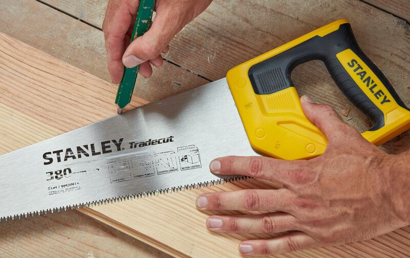 A Stanley STHT20348-1 TradeCut 3.0 egy 380 mm pengehosszúságú kézi fűrész, melyet univerzális vágási feladatokra terveztek, különösen faanyagokhoz. A penge vastagsága mindössze 0,85 mm, így csökken a hajlás, és biztosabbá válik a vágás. A kalendésített fogazat és a háromoldalú élszögelés gyors és sima vágást eredményez. A markolaton integrált 45°-os és 90°-os jelzések segítik a gyors és pontos méretezést.