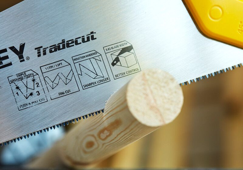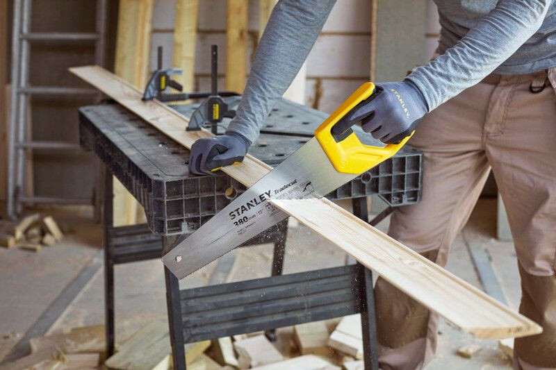 A Stanley STHT20349-1 egy 380 mm pengehosszúságú TradeCut 3.0 kézi fűrész, amely 11 fog/palc (11 TPI) finomságú fogazással készül. Kifejezetten alkalmas puha- és keményfaanyagok, OSB-lemez, laminált padló, PVC-csövek és díszlécek vágására, ahol precíz, sima vágás szükséges. A penge vastagsága 0,85 mm, ami csökkenti az elhajlást és növeli a vágás pontosságát. A markolaton 45°-os és 90°-os jelölések segítik a gyors és precíz méretezést. A fogak indukciósan edzettek, hosszabb éltartamot biztosítanak, miközben a kényelmes markolat jó fogást nyújt.