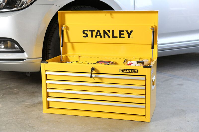 A Stanley STMT1-75062 egy masszív, fém felső szerszámtároló modul, amelyet műhelykocsik vagy szerszámkocsik bővítésére terveztek. A 4 fiókos kialakítás rendezett, jól áttekinthető tárolást biztosít kéziszerszámoknak, tartozékoknak és apró alkatrészeknek. A stabil, felnyitható felső fedéllel és zárható rendszerrel biztonságosan tárolhatók benne az értékes szerszámok, miközben a kocsira helyezve professzionális, moduláris műhelymegoldást ad.