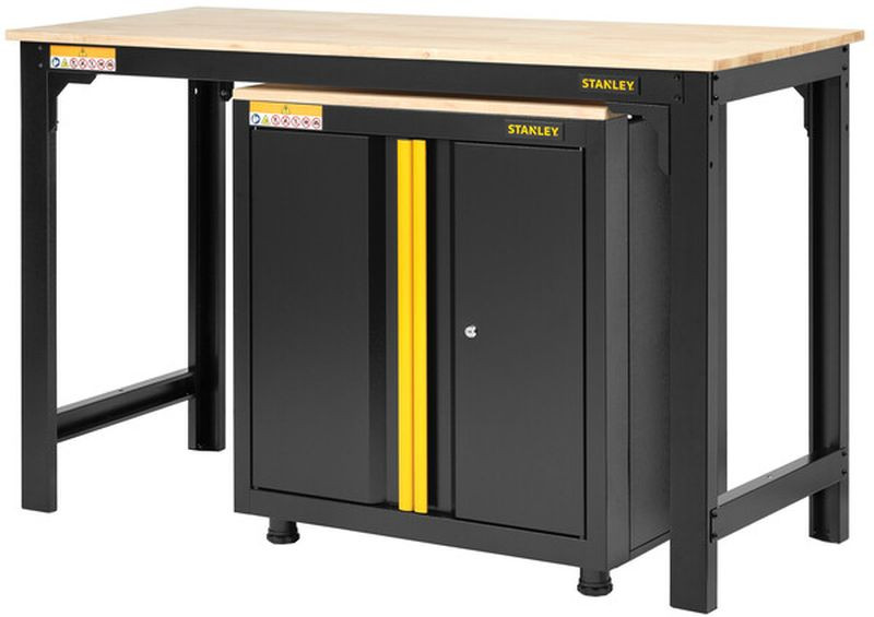 • Tárolási lehetőség: A nagy alsó tér lehetőséget biztosít két Stanley 2-Ajtós Alapszekrény vagy két Stanley 6-fiókos Gurulós szekrény elhelyezésére.