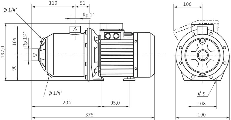• Szívóoldali csőcsatlakozás: Rp 1 1/4