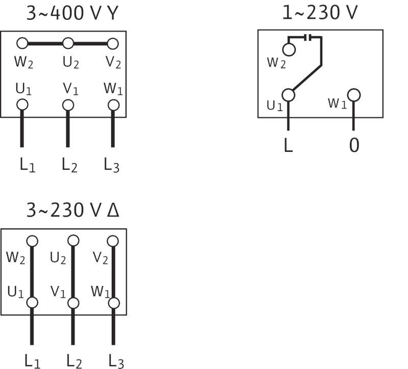 • Az egyfázisú motor beépített termikus motorvédelemmel és kondenzátorral van felszerelve