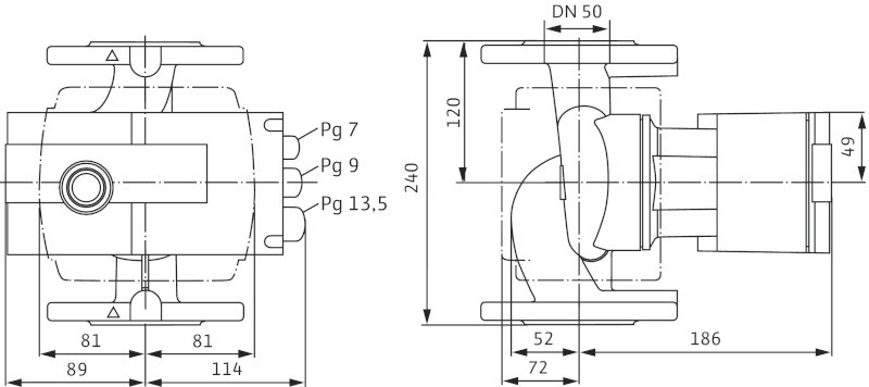 • Nyomóoldali csőcsatlakozás: DN 50