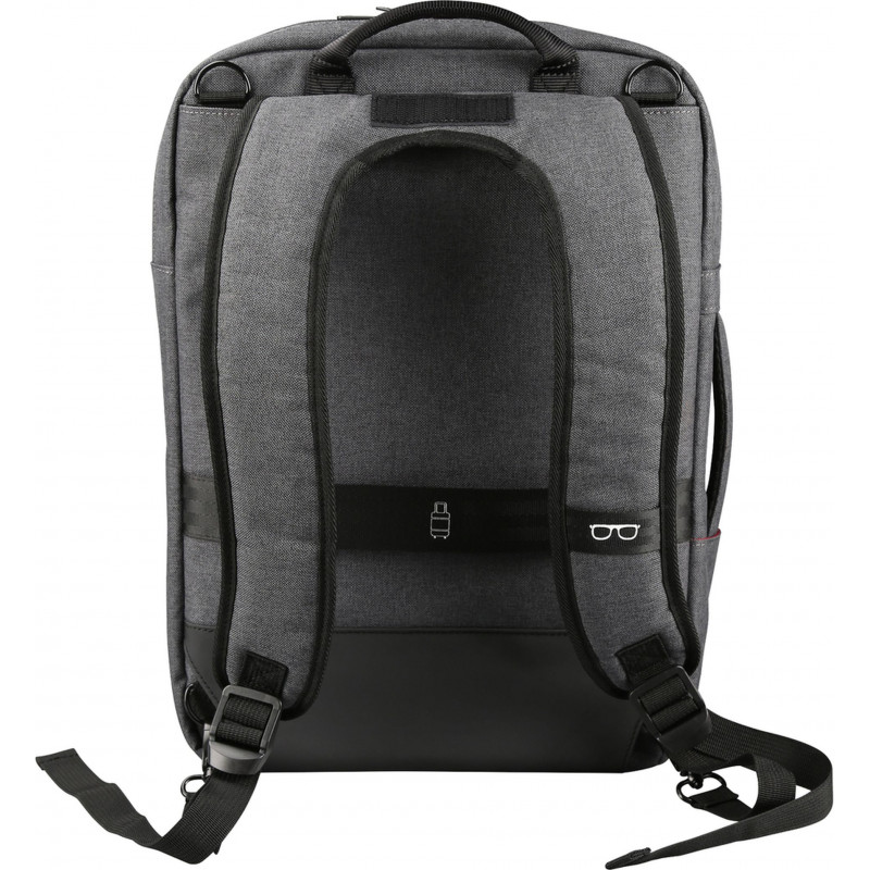 A multifunkciós hátizsák max. 15,6" méretű laptopok vagy max. 10,1" méretű táblagépek szállítására alkalmas. Használható mint hátizsák, táska vagy messenger. Alkalmas munkába vagy mindennapos használatra. A párnázott belső zseb gondoskodik az elegendő helyről és az elektromos berendezések megfelelő védelméről. A két elülső zseb alkalmas dokumentumok vagy gyakran használt apróságok tárolására. A táskát hozzáerősíthetjük kerekes járművek fogantyújára a kényelmesebb utazás érdekében.• Multifunkciós hátizsák